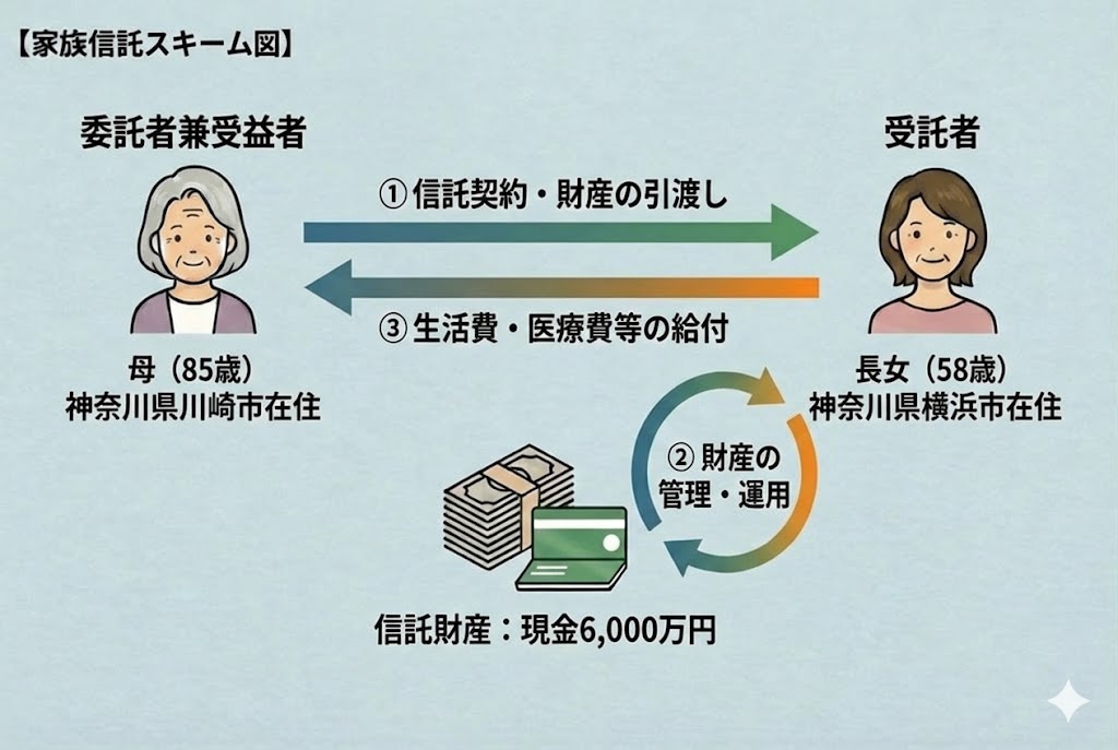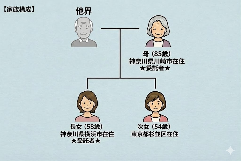 ◆家族構成・居住地 | 母(85歳) =神奈川県川崎市在住 ★委託者兼受益者★ |