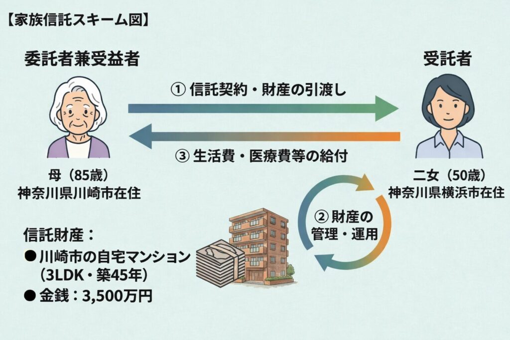 ◆信託財産 | (不動産) 川崎市の自宅マンション(3LDK・築45年) (金銭) 3500万円 |